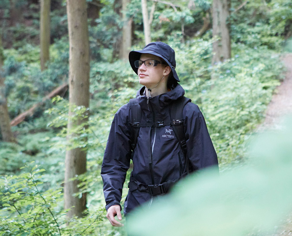 本格的な山登りを想定したシリーズ最高峰モデル。レンズ横には脱着式のフードを搭載し、雪による光の反射や風の侵入を抑えてくれます。テンプル後方を薄く設計することで、ヘルメットや帽子などをかぶった場合でも快適な装用ができるよう工夫しました。