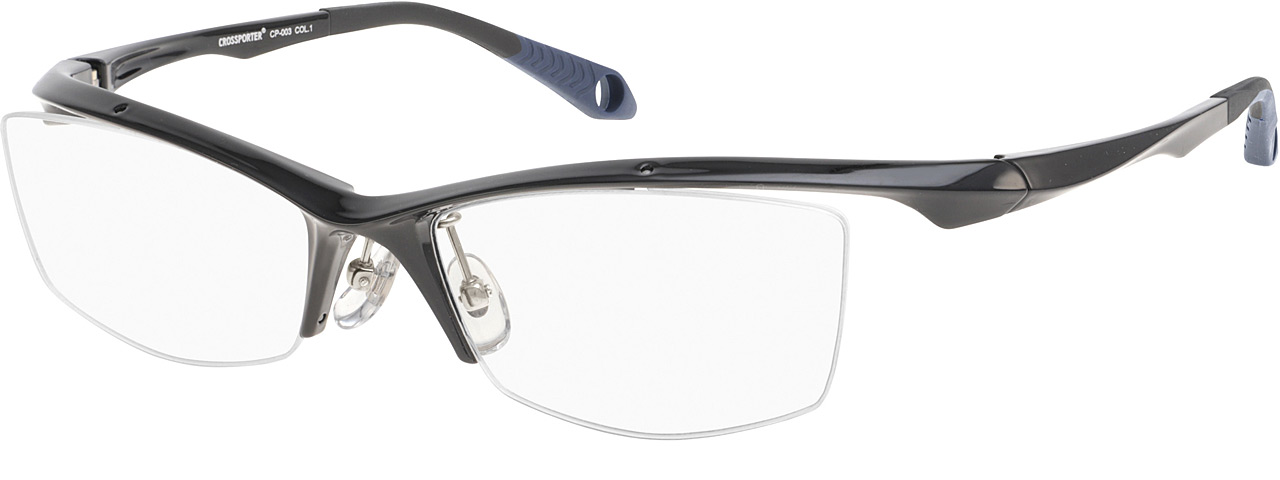 フロントからテンプルにかけての強いカーブラインが特徴的なモデル。カーブを付けることでメガネをかけた時のホールド感がアップし、よりフィット感を感じることができます。また、テンプルにくぼみを入れることで軽量化を実現。角を付けたレンズ型がスタイリッシュな印象を与えてくれるアイウェアです。