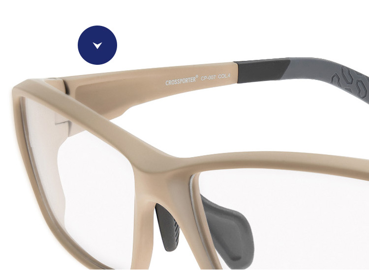 凹凸があり、太めのフレームが特徴的なモデル。視界不良時や手袋などを装着した場合でもメガネの形が感覚で分かるように工夫が施されています。鼻パットには自分で調節可能なラバー素材を使用。過酷な状況にもフィットするアイウェアです。