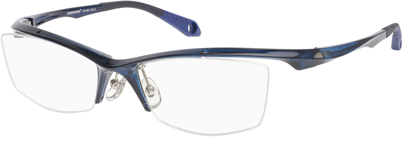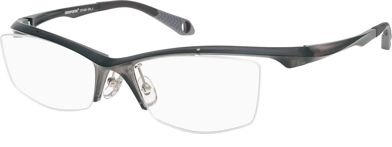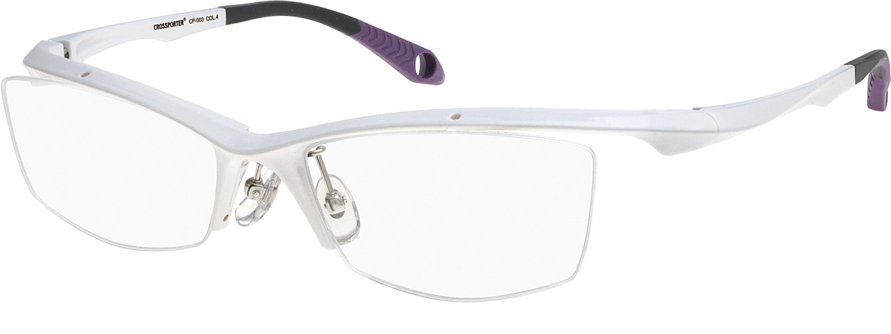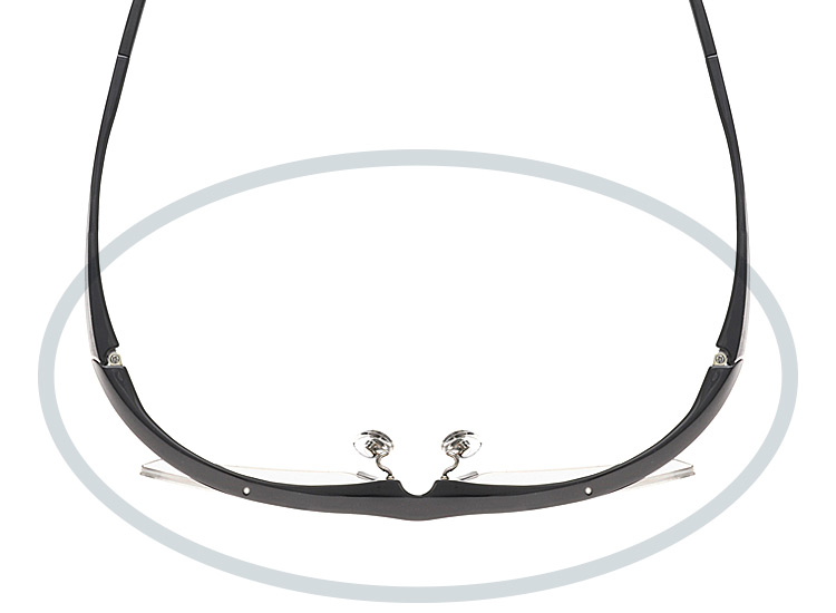 フロントからテンプルにかけての強いカーブラインが特徴的なモデル。カーブを付けることでメガネをかけた時のホールド感がアップし、よりフィット感を感じることができます。また、テンプルにくぼみを入れることで軽量化を実現。角を付けたレンズ型がスタイリッシュな印象を与えてくれるアイウェアです。