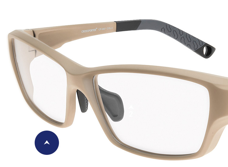 凹凸があり、太めのフレームが特徴的なモデル。視界不良時や手袋などを装着した場合でもメガネの形が感覚で分かるように工夫が施されています。鼻パットには自分で調節可能なラバー素材を使用。過酷な状況にもフィットするアイウェアです。